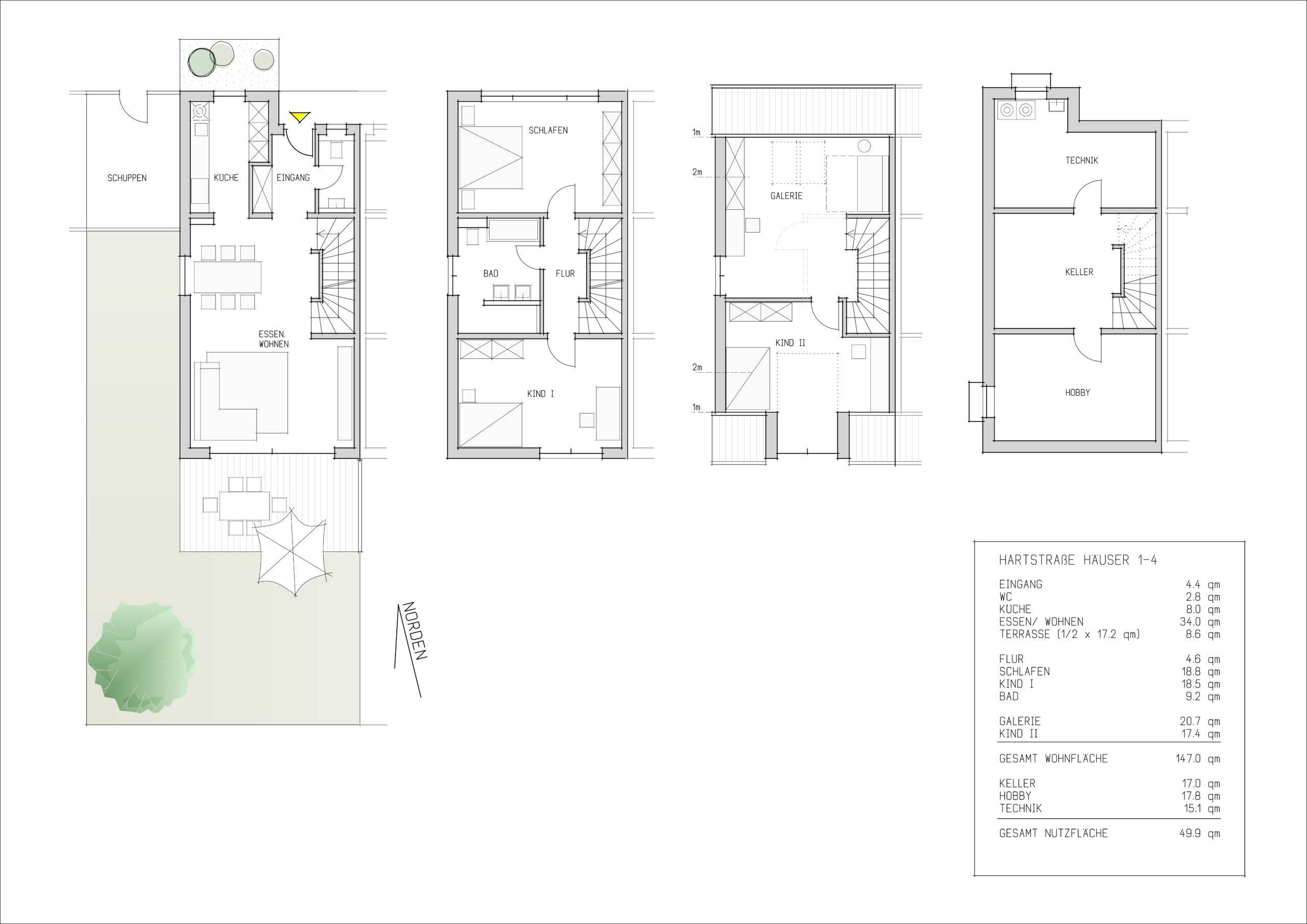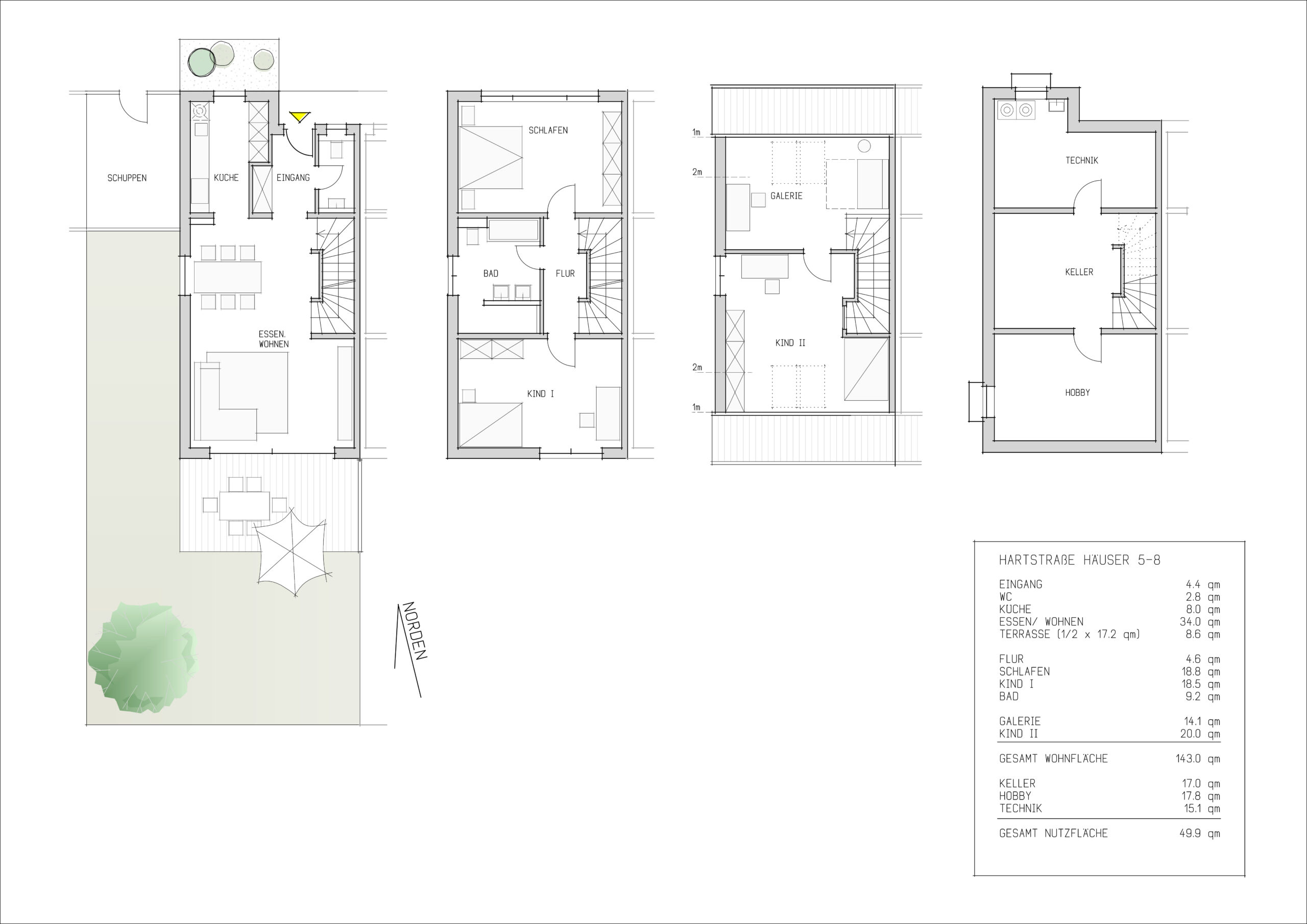 Wohnanlage mit 8 Doppelhäusern mit je150 qm